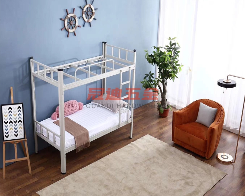 材質選購:宿舍上下鋪鐵床建議選購冷軋鋼材質的上下鋪,性價比高,環保系數相對較高。相對來說鋼管管壁厚度越厚,床的牢固性就越好。所以選擇的時候盡量選擇鋼管厚點的。